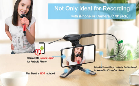 What's more, the included adapters allow it to work with devices like iPhone, iPad, Android phone, DSLR camera. Ideal for home karaoke, video recording, conference speech, presentation, outdoor events, Recreational Vehicle party, vocal recording, etc.